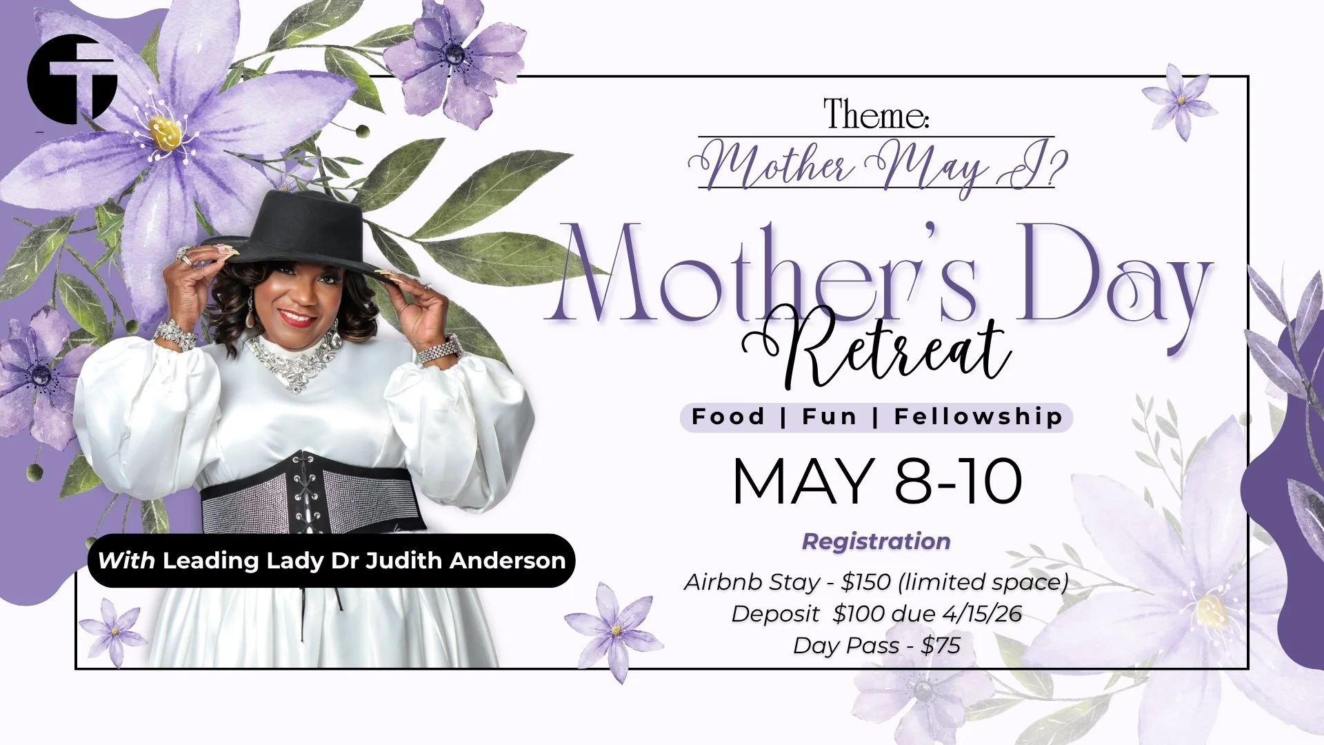 Join us for our Mother’s Day Retreat, “Mother May I?”—a time to relax, be refreshed, and enjoy food, fun, and fellowship as we celebrate the beauty of motherhood.